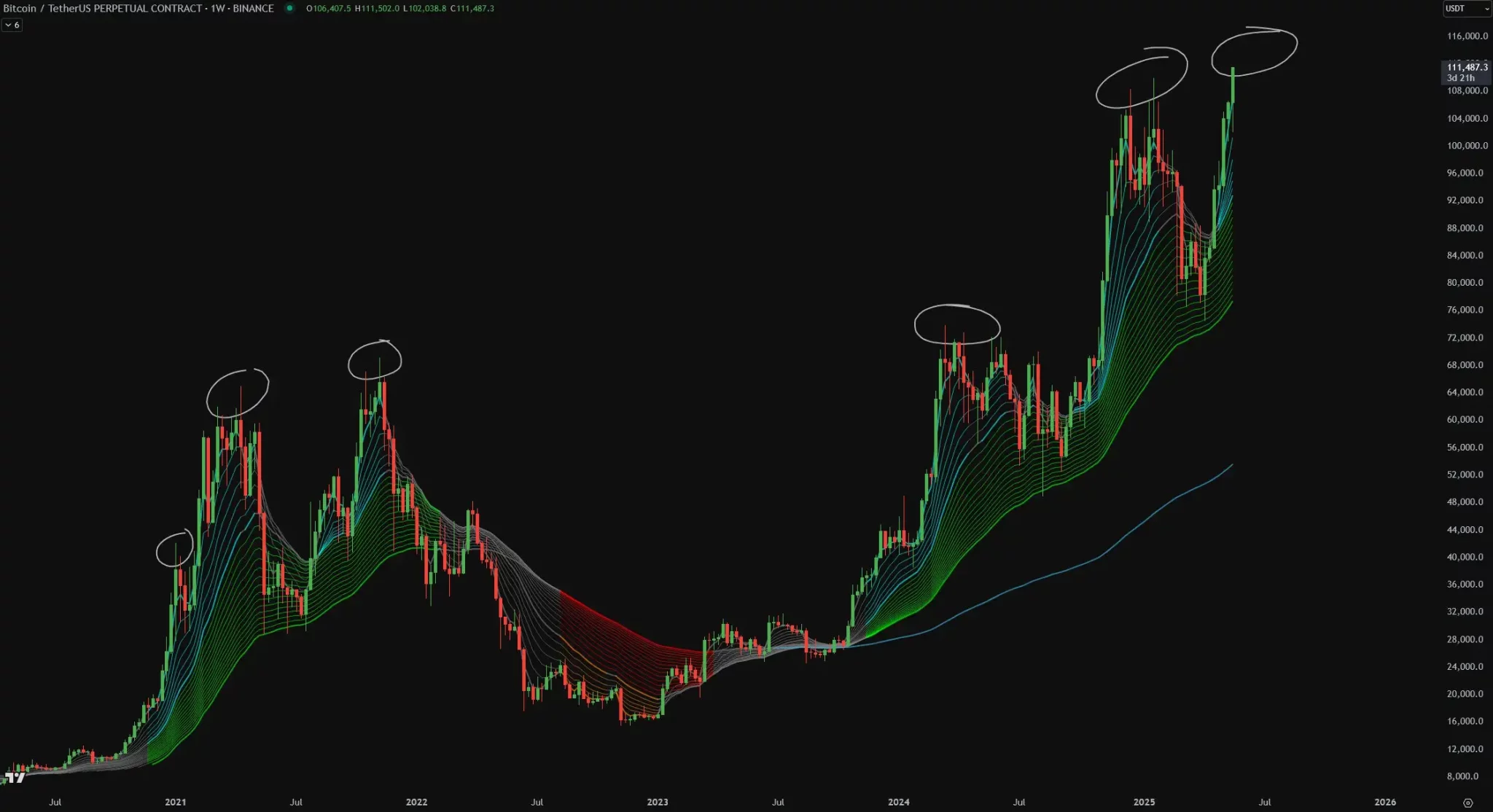 Bitcoin’in yükselişinde Strategy (eski adıyla MicroStrategy) gibi kurumsal oyuncuların ve spot Bitcoin ETF’lerinin rolü büyük. Ancak analistler, tarihsel verilere dayanarak bu seviyelerde bir geri çekilmenin olası olduğunu vurguluyor. Haftalık basit hareketli ortalama (SMA) ve göreceli güç endeksi (RSI) gibi teknik göstergeler, piyasanın aşırı alım bölgesine yaklaştığını işaret ediyor.